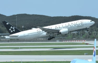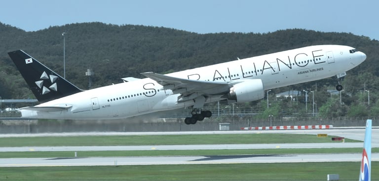 An Asiana Airlines 777-200ER in the "Star Alliance" Livery Getting Underway on another international flight (this time to Istanbul). With the Asiana-Korean Air acquisition, this is a livery that will certainly not be around much longer.