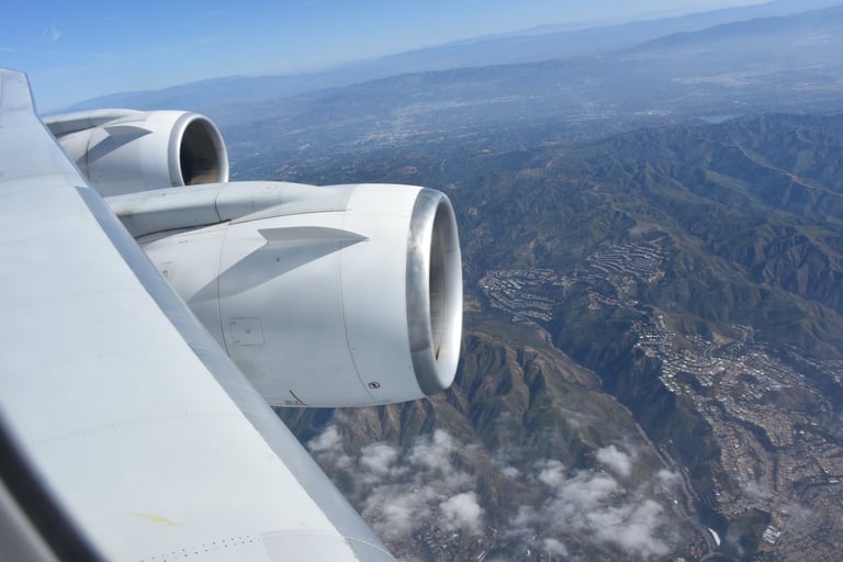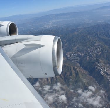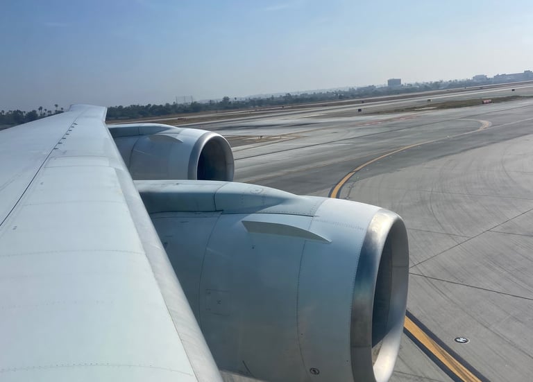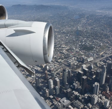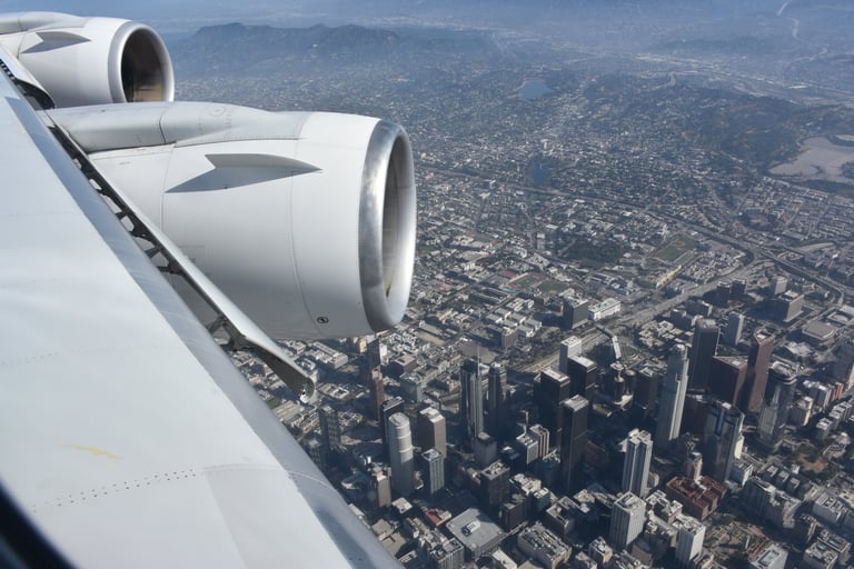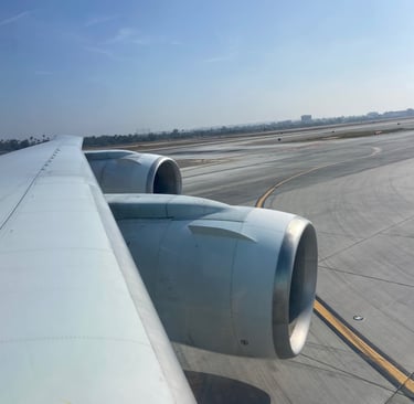 Meanwhile, our breakfast service included a rice-porridge dish which was unremarkable but certainly not terrible. Honestly, I wasn't that hungry and was too focused out the window observing our descent and approach into Los Angeles. Having seen Korean Air's 747 fly into Los Angeles on the western approach for years, it felt kind of strange to be on the flight itself and seeing LA from the air. I should also note, this flight was in May (four months after the devastating Palisades fire), so the damage was clearly visible as we flew over the Santa Monica coastline on our down leg into LAX. I even flew over my neighborhood and high school, which are both right under the flight path of flights typically coming from Asia into Los Angeles. But the most exhilarating area we flew over was Downtown Los Angeles, being that close to the buildings is exhilarating but also a tad bit freaky, especially for anyone that may have been flying into Los Angeles after 9/11. Shortly after passing Downtown, we made our final 180 degree turn over Commerce, California and began our final approach.