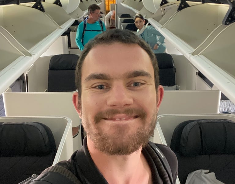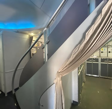 I am sure everyone of you is also wondering about if I went on the upper deck? Well, you will not be disappointed, after we got to the gate and the rest of the passengers deplaned. The crew allowed both my new avgeek friend and myself to come up to the upper deck on the 747-8. While it was only first class seats and there wasn't anything too remarkable, it was the experience that mattered the most. It is the first time I have checked out the upper deck of a Boeing 747 that is currently active in commercial airline service. If I was to give any advice to anyone who is trying to fly on a 747 in this era. I would recommend you do everything you can to get permission to check out the upper deck as it is arguably the one feature that makes the 747 unique.