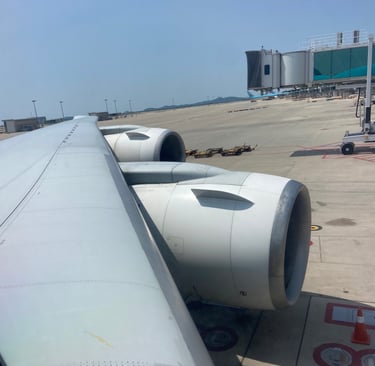 At that very moment, our Korean Air 747-8 was being towed into the gate for our flight home, It was a pretty exhilarating experience to see it coming to our gate. I could almost hear the 2001: A Space Odyssey theme opening in my head as it got closer. Although it is rather cliche, there is no question the feeling of flying on the 'Queen of the Skies' is more of a rarity and so I completely understood why I must've went to the place that I did upon seeing our aircraft pulling in.