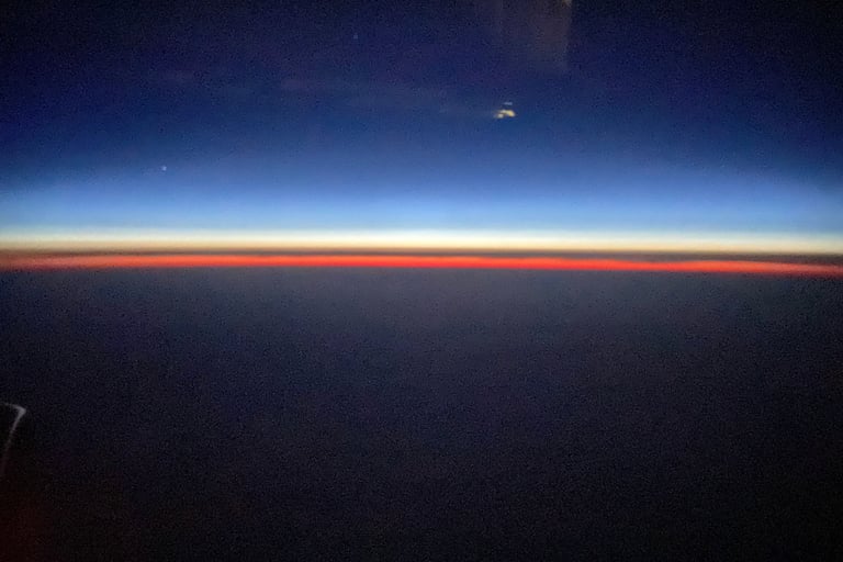 An incredible sight for an avgeek: Sunrise from a 747 at cruising altitude.