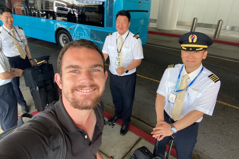 The Korean Air logo on the pilot caps is proof they were piloting my flight home safely. Couldn't miss an opportunity to thank them on the curb next to Tom Bradley International Terminal at LAX.