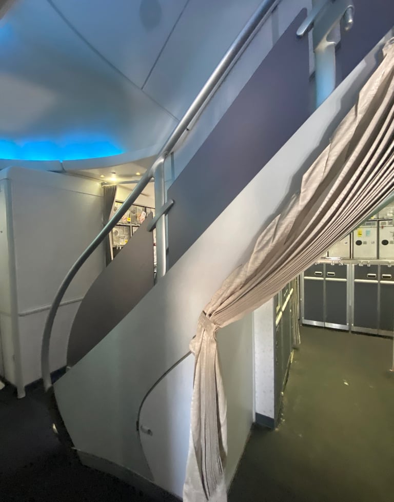 It may not be the most remarkable interior, but the experience of seeing an active 747 upper deck with the cockpit door straight ahead was surreal.